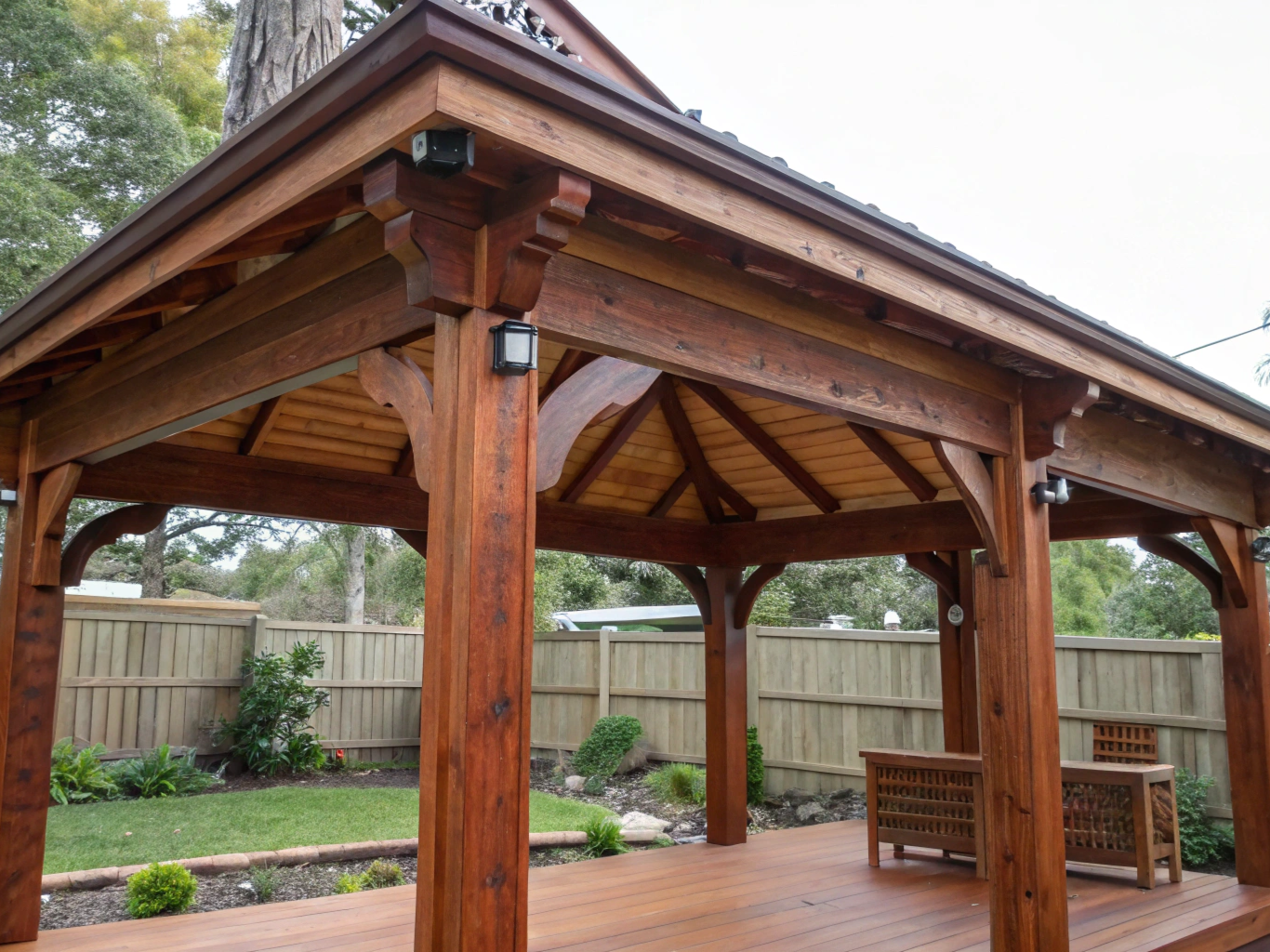 Merbau is our top recommendation for Queensland conditions — naturally termite-resistant, exceptionally durable, and beautiful in colour. Spotted gum and ironbark are outstanding alternatives. Treated pine works well for homeowners wanting a great-looking timber gazebo at a more accessible price point.