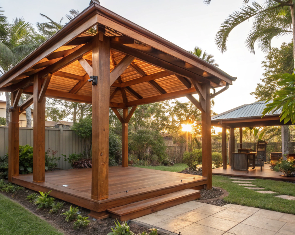 Timber gazebos are one of the most popular and enduring outdoor structures across Ipswich and Southeast Queensland — and once you see a well-built one sitting in a garden, it’s pretty easy to understand why. There’s a warmth and a character to timber that no other material can match. It doesn’t look placed in a garden. It looks like it grew there, like the space just kind of shaped itself around it naturally.